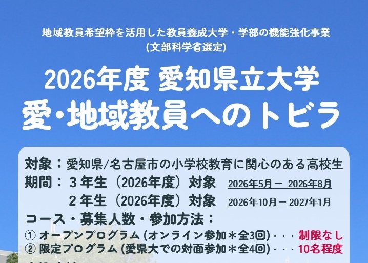 2026年度より高大連携プログラム「愛・地域教員へのトビラ」を開始します