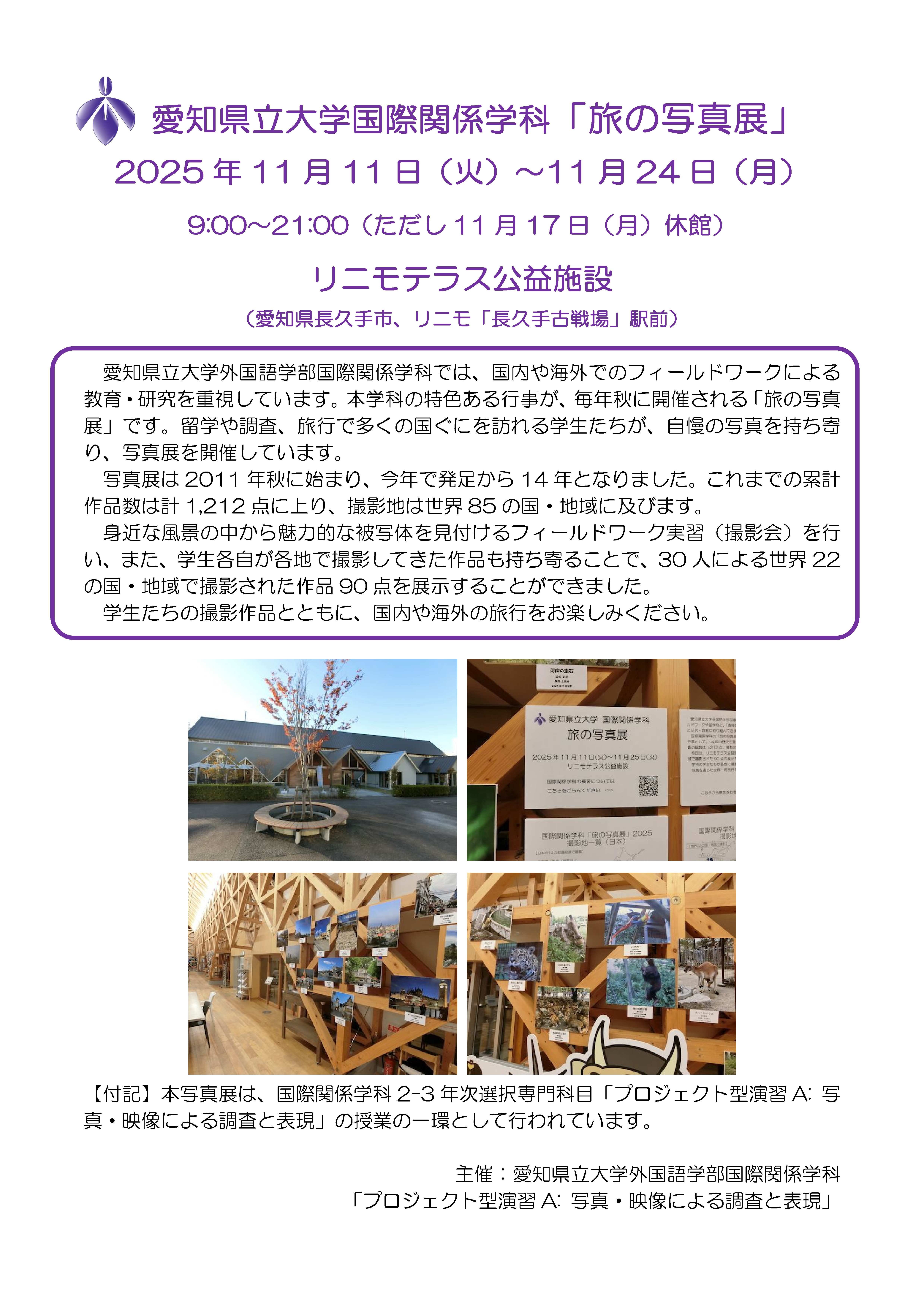 愛知県立大学 外国語学部 国際関係学科「旅の写真展2025」を開催します!