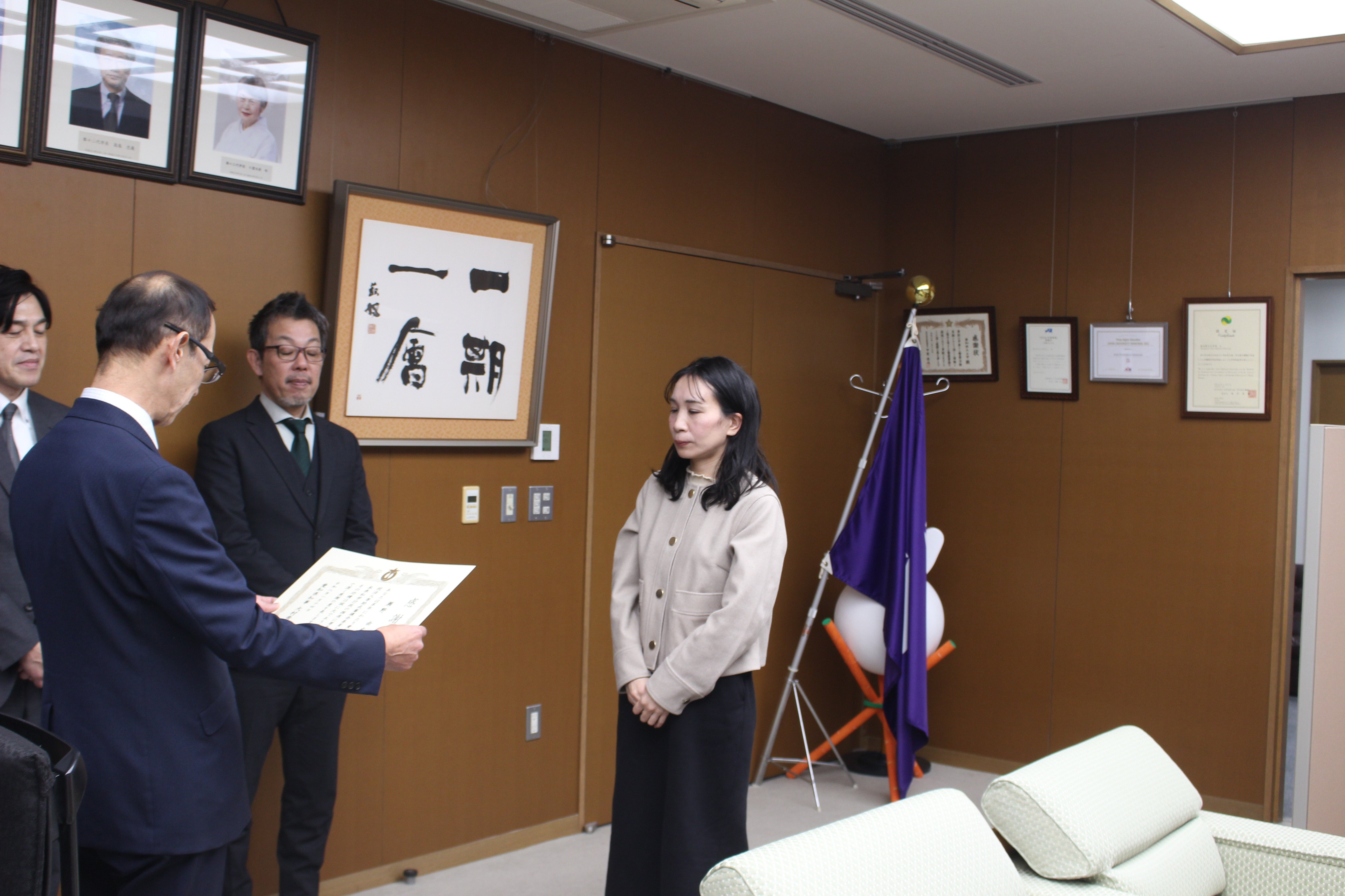 教育福祉学部教育発達学科の瀬野 由衣准教授が愛知県学校法人等助成審議会を10年間務め、2026年1月14日(水)に愛知県立大学長久手キャンパスにて感謝状贈呈式が行われました。