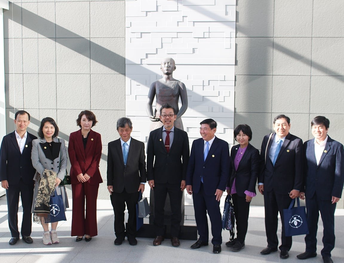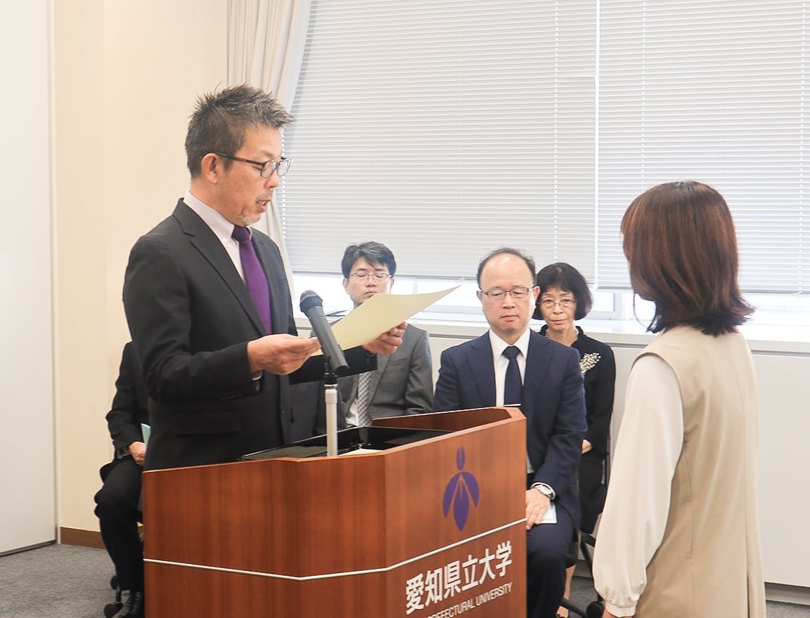 愛知県立大学の始まりは、戦後間もない1947年に創設された愛知県立女子専門学校です。敗戦から立ち上がろうとした苦難の時代に、私たちの大学は女性の高等教育をめざしました。私は卒業生の一人として、その原点には、同じ年に施行された日本国憲法とともに、平和の象徴としての意味も込められていたと理解しています。女性と平和――いまもなお、世界における切実な課題です。