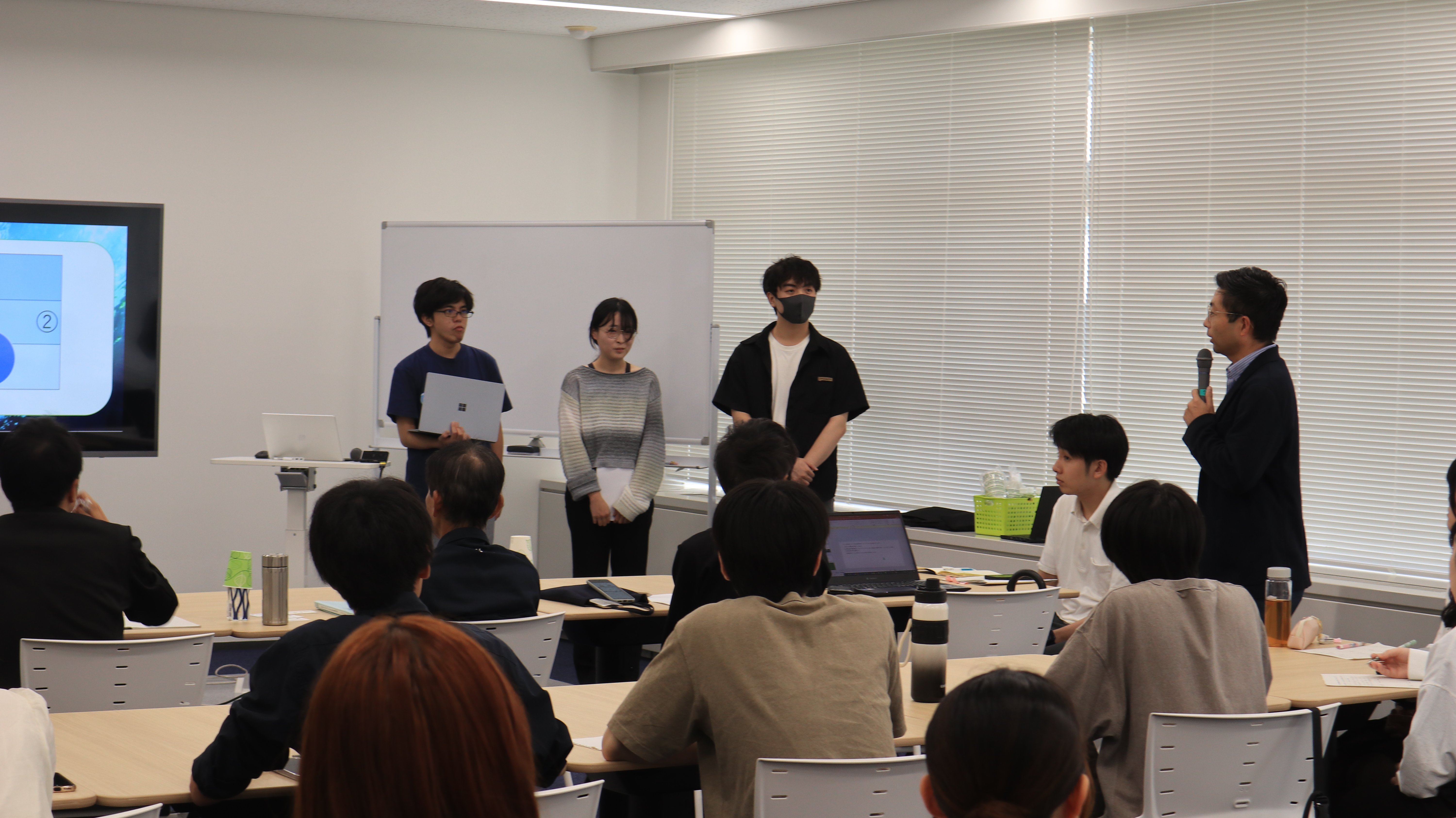 各グループでプロジェクトのテーマを設定し、夏季休暇中に企業への訪問を行いました。学生が考えるその企業の課題や提案などをもとに最終まとめを行い、9月29日には、お世話になった企業等の皆さんの前で最終報告をしました。